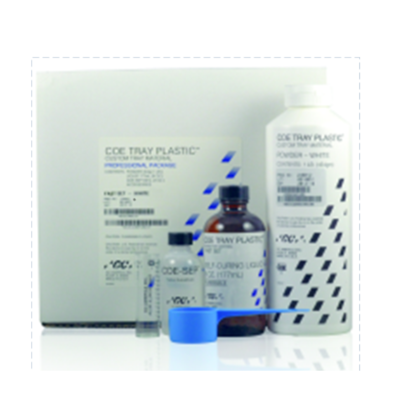 Self-curing acrylic resin constructed for accurate fitting, individualized custom impression trays. Economy Package Contains: One package of powder (3 lbs), 1 bottle of liquid (1 pt) and 2 bottles of COE-SEP liquid (2 oz).