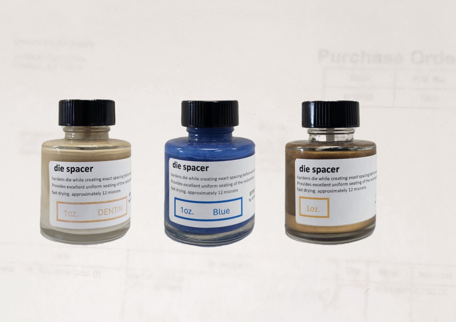 Prime quality spacers for die preps. Available in Blue, Red, Silver, Gold & Dentine. 1 oz or 4oz