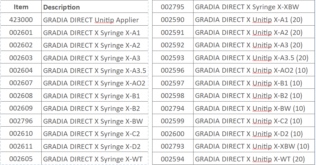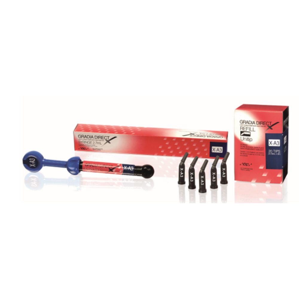 GRADIA DIRECT X has the same great handling you’ve come to love from GRADIA DIRECT; it now has 60% more radiopacity. GRADIA DIRECT X simplifies your aesthetic restorations by combining smooth handling, durability and high polish-ability into a single, universal composite. This product has been designed to provide excellent wear resistance and ‘natural feel” in the mouth without wearing away opposing enamel.