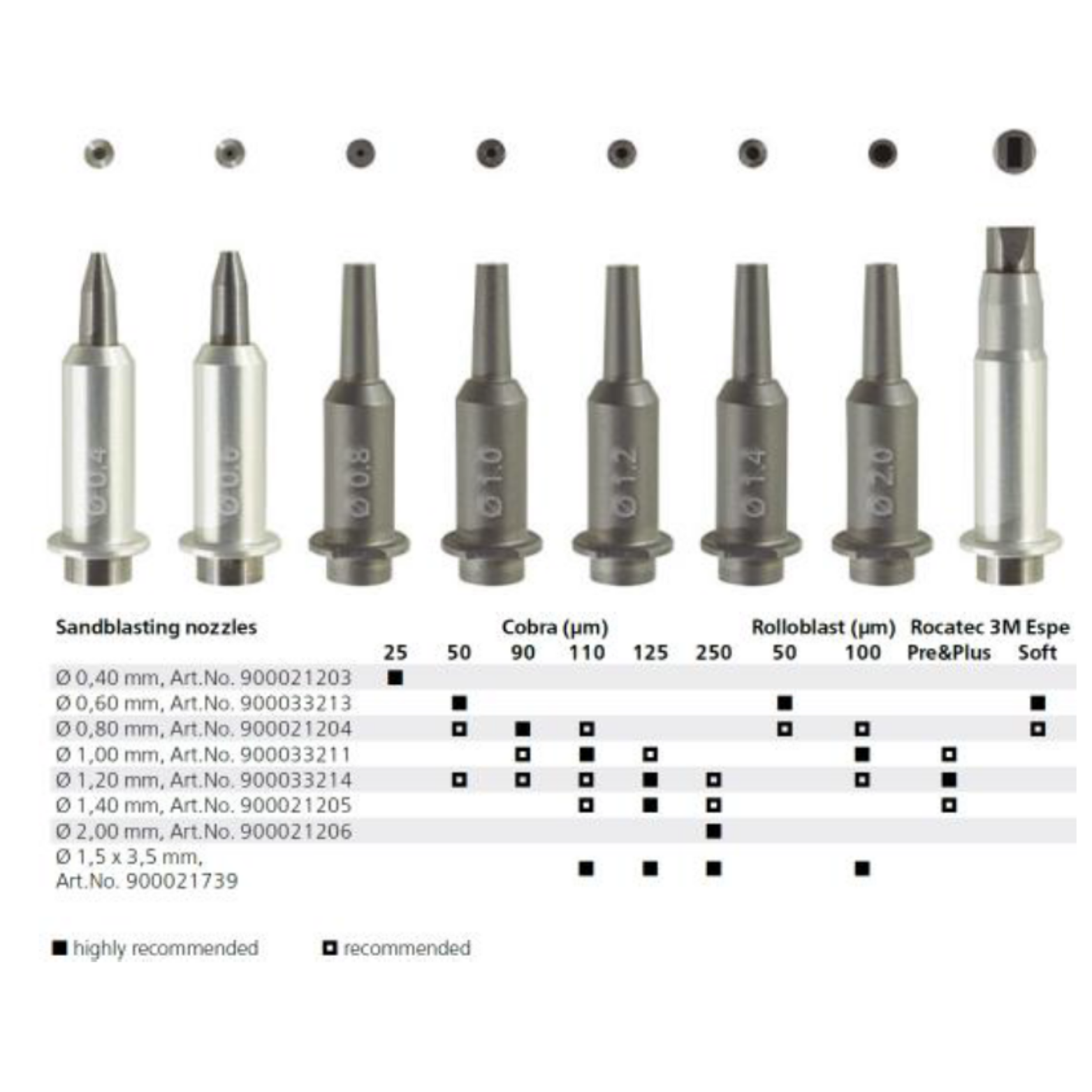 0.40 mm, 0.60 mm, 0.80 mm, 1.00 mm, 1.20 mm, 1.40 mm, 2.00 mm, 1.5 * 3.5 mm