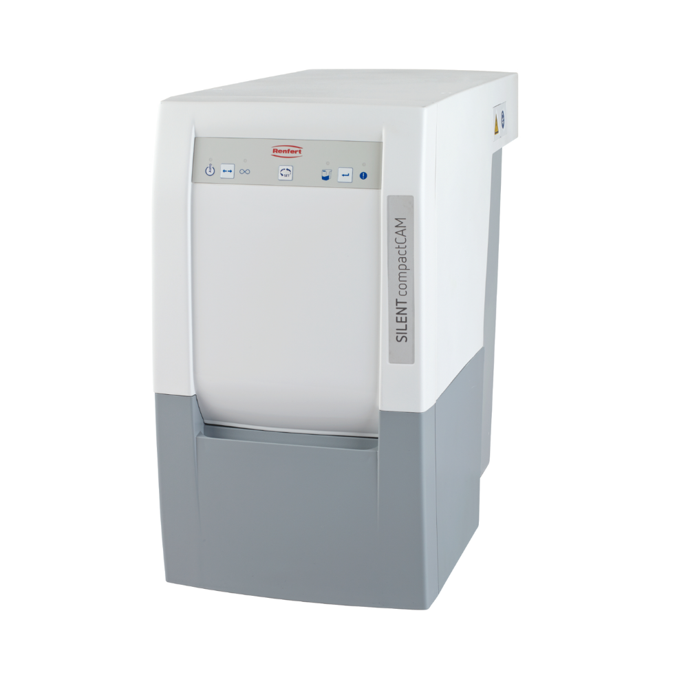 An extraction unit from Renfert, specially developed for optimized use with compact, dental CAM Units. No need to change the dust bag due to the bagless fine filter technology, including mechanical filter cleaning. Processing safety due to bi-directional communication between extraction unit and CAM unit thanks to the SPS interface. Process optimized suction performance for CAD/CAM units