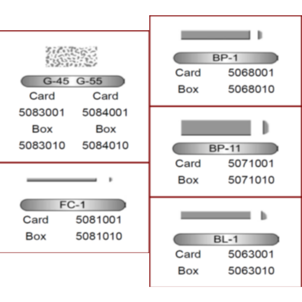 B-1, B-2, B-4, B-6, G-45, G-55, GC-1, RC-1, GR-4, BD-1, FC-1, GC-3, GD-1, GR-5, BR-1, BP-1, GC-5, GD-2, GR-6, RT-0, BL-1, GC-6, GD- 3, BR-2, BP-11, GC-7, GD-4, CR-1, RT-1, BL-11, GD-3L, GD-5, RI-1, RR-2